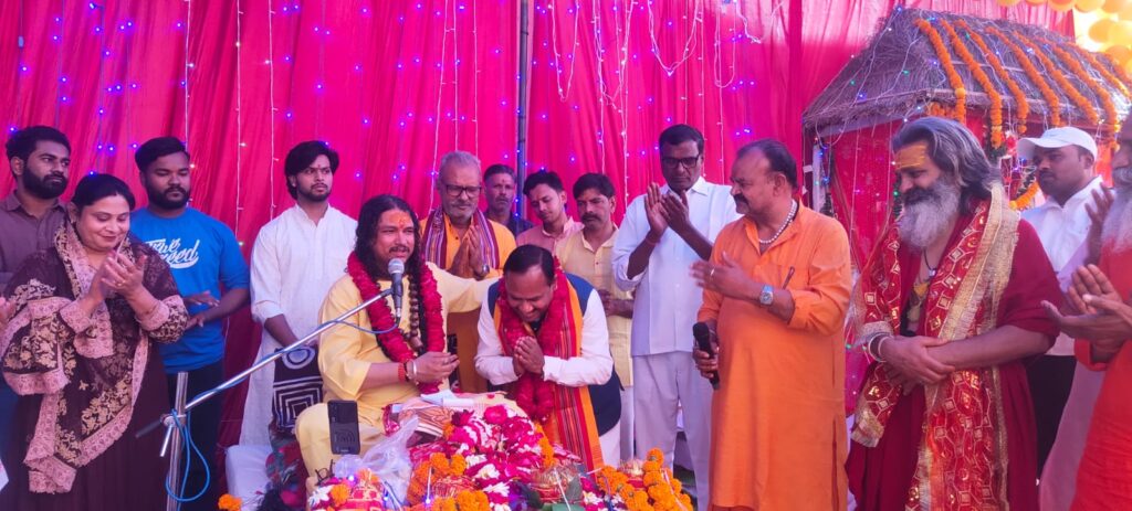 श्री अखंड परशुराम अखाड़े के संयोजन में जिला कारागार में आयोजित श्रीमद् भागवत कथा के चौथे दिन भागवताचार्य पंडित पवन कृष्ण शास्त्री ने महिषासुर मर्दिनी का चरित्र श्रवण करया