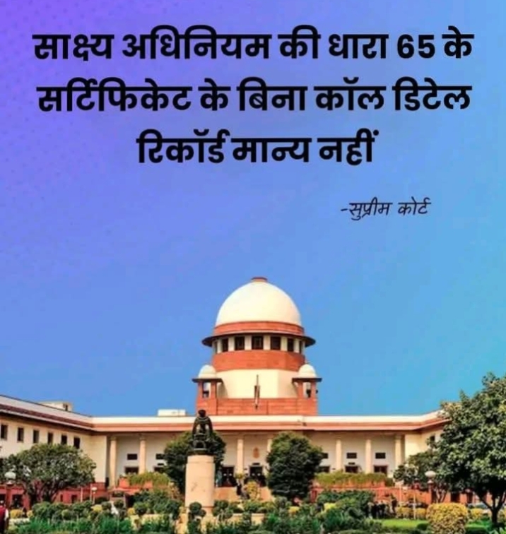 सुप्रीम कोर्ट ने हत्या के एक मामले में दोषी ठहराए गए एक व्यक्ति को बरी किया। कोर्ट ने फैसला सुनाया कि कॉल डिटेल रिकॉर्ड (CDR) को सबूत के तौर पर तब तक नहीं माना जा सकता, जब तक उनके साथ भारतीय साक्ष्य अधिनियम (Indian Evidence Act) की धारा 65-B के तहत अनिवार्य सर्टिफिकेट न हो।