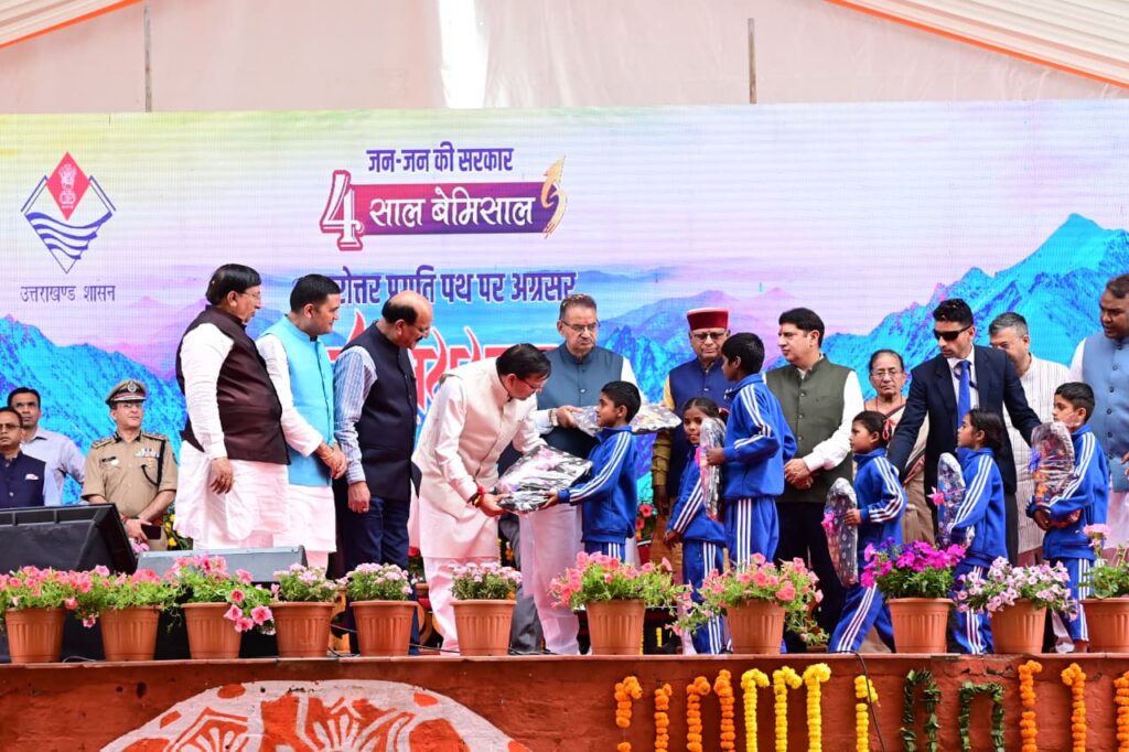 मुख्यमंत्री पुष्कर सिंह धामी ने सोमवार को सरकार के चार वर्ष पूरा होने पर परेड ग्राउंड में आयोजित 4 साल बेमिसाल कार्यक्रम को संबोधित किया।