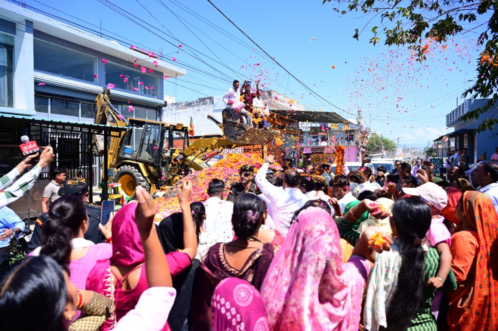 मुख्यमंत्री का रोड शो में जनता व जनप्रतिनिधियों ने पुष्पवर्षा कर भव्य स्वागत किया।