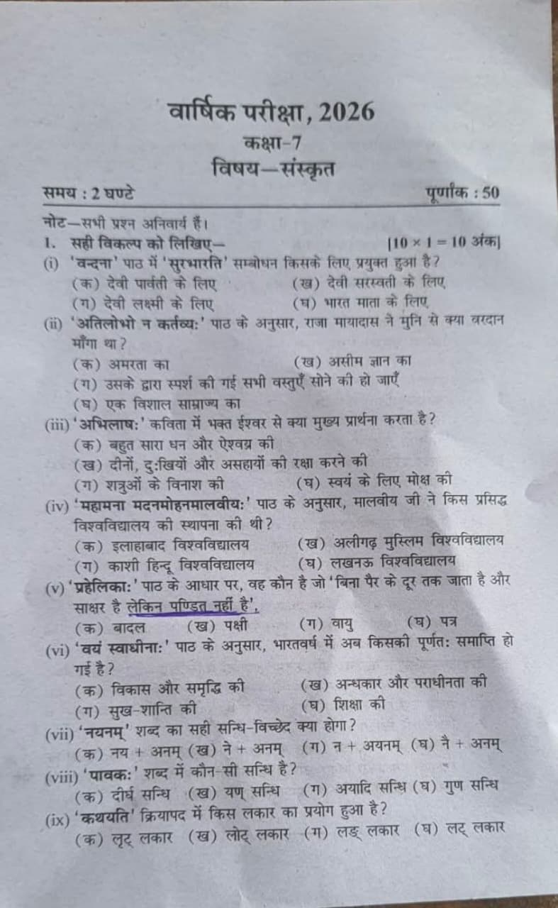 बेसिक शिक्षा विभाग की कक्षा 7 की संस्कृत परीक्षा में पूछी गई एक पहेली ने विवाद खड़ा कर दिया है…