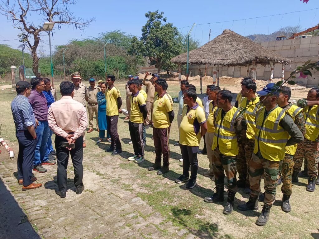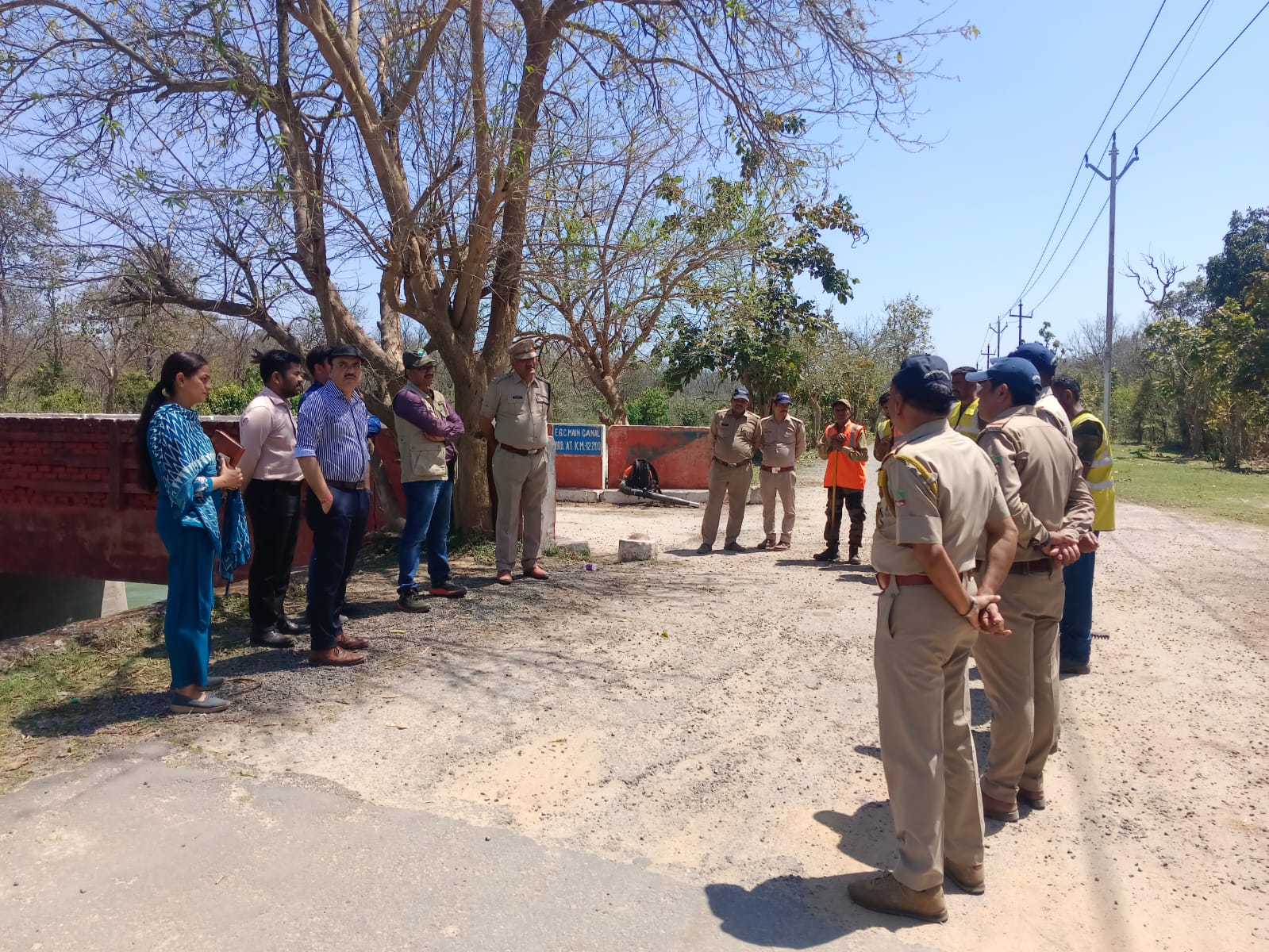 तत्पश्चात् महोदय द्वारा राजाजी टाइगर रिजर्व की हरिद्वार रेंज के अंतर्गत क्रू-स्टेशन रानीपुर में वनागिनि नियंत्रण हेतु संसाधनों का निरीकषण किया गया तथा हरिद्वार रेंज के अंतर्गत कषेत्र भ्रमण कर यनाग्नि सुरक्षा एवं नियंत्रण की समीक्षा की गईं। महोदय, द्वारा राजाजी टाइगर रिजरर्व के संवेदनशील केंद्र तथा मनसा देवी क्षेत्र में विशेष निगरानी रखने हेत् निर्देशित किया गया। राजाजी टाइगर रिजर्व के हरिद्वार उप प्रभाग में 40 वनाग्नि स्रक्षा श्रमिक तथा 10 आपदा मित्रों की तैनाती की गई है।