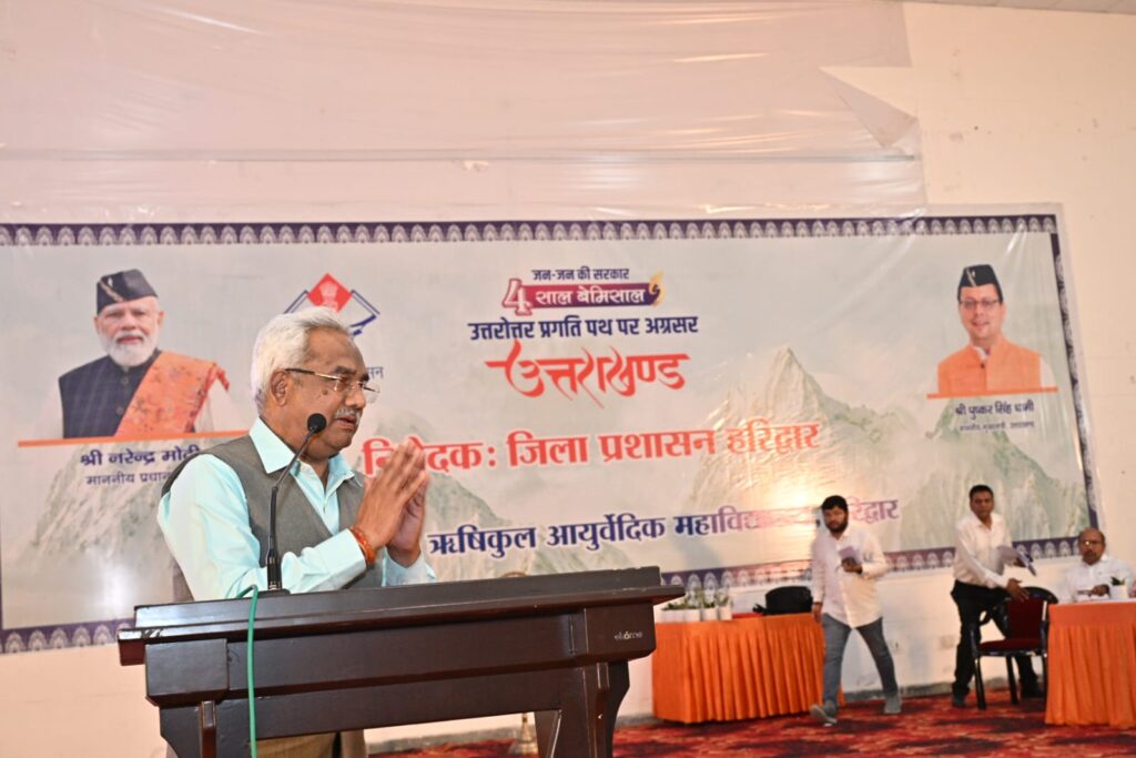 राज्य सरकार के चार वर्ष पूर्ण होने के अवसर पर जन – जन की सरकार चार साल बेमिसाल कार्यक्रम ऋषिकुल आयुर्वेदिक महाविद्यालय ऑडिटोरियम में कार्यक्रम अयोजित किया गया,जिसमें मुख्य अतिथि कैबिनेट मंत्री मदन कौशिक एवं उपस्थित अतिथियों ने दीप प्रज्वलित कर कार्यक्रम का शुभारंभ किया।