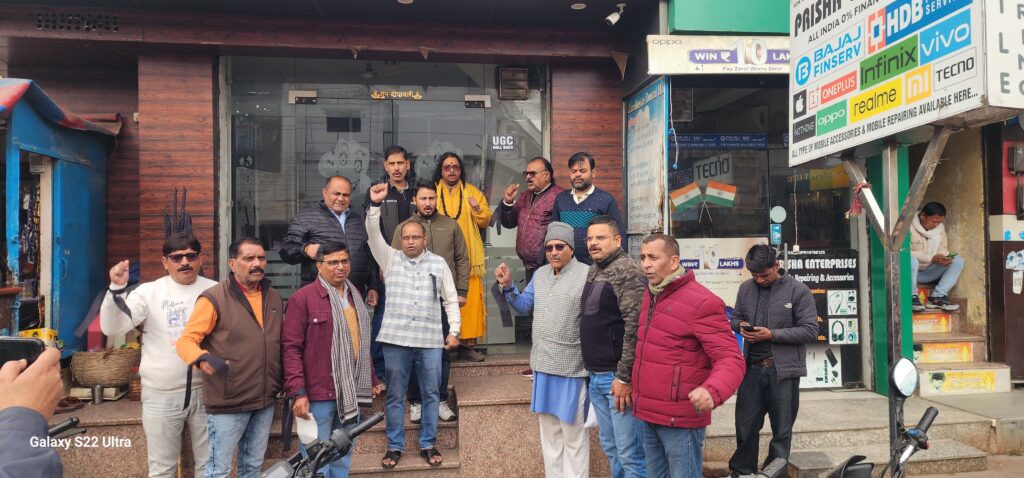 हरिद्वार, 1 फरवरी। यूजीसी कानून का विरोध करते हुए श्री अखंड परशुराम अखाड़े के अध्यक्ष पंडित अधीर कौशिक के नेतृत्व में स्वर्ण समाज के लोगों ने जनजागरण अभियान चलाते हुए व्यापारियों के प्रतिष्ठान पर पहुंचकर कानून की विसंगतियों से अवगत कराया। पंडित अधीर कौशिक ने कहा कि शिक्षा के क्षेत्र में इस तरह का कानून भेदभाव को बढ़ाएगा। सरकार को जल्द से जल्द इस काले कानून को वापस लेना चाहिए। जात पात का भेदभाव किसी भी सूरत में बर्दाश्त नहीं किया जाएगा। पंडित अधीर कौशिक ने कहा कि विश्वविद्यालयों में शिक्षा ग्रहण करने वाले विद्यार्थियों के भविष्य से खिलवाड़ नहीं होने देंगे। सरकार को कानून वापस लेना चाहिए। उन्होंने कहा कि इस कानून से छात्रों का जीवन अंधकार में चला जाएगा। स्वर्ण समाज को खुलकर इस कानून का विरोध करना चाहिए। भागवताचार्य पंडित पवन कृष्ण शास्त्री एवं संजय शर्मा ने कहा कि समान रूप से शिक्षा के अवसर सभी को प्राप्त होने चाहिए। कानून सुरक्षा और रक्षा के लिए बनाए जाते हैं। लेकिन इस कानून में भेदभावपूर्ण नीति अपनायी जा रही है। जिसे बर्दाश्त नहीं किया जाएगा। सरकार को स्वर्ण समाज के हितों में फैसला लेते हुए इस कानून को तत्काल वापस लेना चाहिए। भागवताचार्य पंडित पवन कृष्ण शास्त्री, संजय शर्मा, ऋषि शर्मा, मनोज शुक्ला, रमेश पांडे, यशपाल शर्मा, नमन मिश्रा, मोनू, नरेश, शंभू प्रसाद पंत, बृजमोहन शर्मा, विष्णु गौड़, बालकृष्ण शास्त्री, कुलदीप शर्मा, मनोज ठाकुर, आशीष मेहता, राकेश एडवोकेट, आदेश मारवाड़ी, संदीप मेहता, विक्रम ठाकुर आदि शामिल रहे।