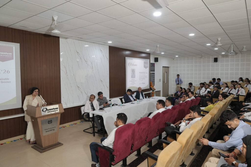 प्रूडेंस’26 सम्मेलन क्वांटम विश्वविद्यालय की शैक्षणिक उत्कृष्टता, नवाचार और सतत विकास के प्रति प्रतिबद्धता को दर्शाता है। यह सम्मेलन विभिन्न क्षेत्रों के विशेषज्ञों, शिक्षाविदों और विद्यार्थियों को एक मंच प्रदान करता है, जहां वे विचारों का आदान-प्रदान कर एक हरित और सतत भविष्य की दिशा में सार्थक योगदान दे सकते हैं। यह दो सम्मेलन आगामी सत्रों और चर्चाओं के साथ कल भी जारी रहेगा, जो प्रतिभागियों के लिए ज्ञानवर्धक और प्रेरणादायक सिद्ध होगा।