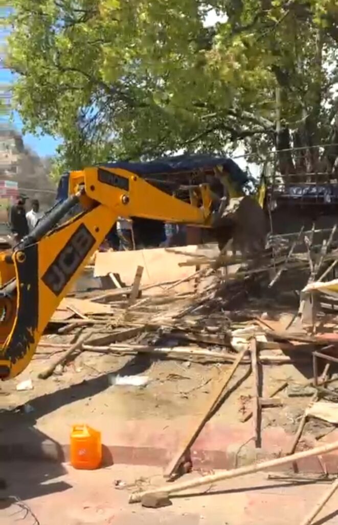पंतद्वीप घाट एवं आसपास के क्षेत्रों में अतिक्रमण के विरुद्ध कार्यवाही करते हुए लगभग 100 से अधिक झोपड़ियों/खोखो को किया गया ध्वस्त